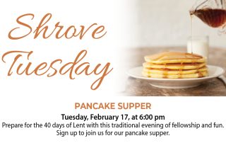 Prepare for the 40 days of Lent with this traditional evening of fellowship and fun. Sign up to join us for our pancake supper.